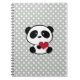A sweet love notebook with a cute black and white panda holding a red heart on a classic grey and white polka dots pattern background. A unique and modern way to keep notes!