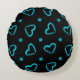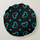 Heart Pattern in Blue & Black Round Cushion