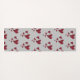 This personalised yoga mat features a pattern of painted bright red hearts. These hearts of various sizes cover both the front and the back of this yoga mat. A light grey banner at the top allows for a solid background for your monogram which appears in black and red, fancy script font. Quickly and easily personalise your mat and get ready for outdoor or indoor exercise.