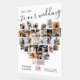 Large acrylic wedding welcome sign with heart photo collage and elegant script calligraphy. The photo collage holds 29 pictures, displayed in vertical, horizontal and square formats. The photo template will automatically create the heart shape.