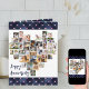 Heart Photo Collage wedding anniversary card which you can personalise with up to 36 different photos and your custom message inside. The heart shaped photo collage is made up of vertical, landscape and square pictures. If you have any trouble with a photo showing at it's best, try cropping it to the right shape and re-uploading it. Happy Anniversary is lettered in handwritten brush script and the design has a love heart patterned border on the inside and out.