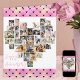 Heart Photo Collage wedding anniversary card which you can personalise with up to 36 different photos and your custom message inside. The heart shaped photo collage is made up of vertical, landscape and square pictures. If you have any trouble with a photo showing at it's best, try cropping it to the right shape and re-uploading it. Happy Anniversary is lettered in handwritten brush script and the design has a love heart patterned border on the inside and out.