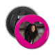 Hot pink heart shaped border for your digital photo on a round bottle opener magnet.