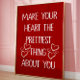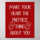Let love lead the way with this heartfelt reminder: “Make Your Heart the Prettiest Thing About You.” This charming quote poster blends white chalk-style typography with playful hand-drawn hearts on a rich red background, creating a warm and meaningful romantic wall art piece that inspires both love and kindness.