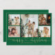 Heart Script Gold Green Merry Christmas 5 Photo Holiday Card