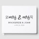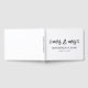 White and black lesbian wedding guest book with Mrs & Mrs in a pretty heart-adorned script.