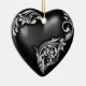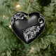Beautiful heart ornament with silvery white flourish scroll on a black heart, perfect for hanging anywhere from the Christmas Tree to a gift package and even tying around the neck of a wine bottle.