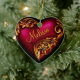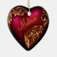 Beautiful heart shaped ornament with gold flourish scroll on a red heart, with customisable text to personalise. Makes a perfect gift for birthdays, anniversaries, or Mum on Mother's Day. Hang on the wall, decorate a gift package, or tie around the neck of a wine bottle.