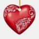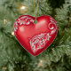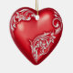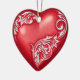 Beautiful heart shaped ornament with silvery white flourish scroll on red, perfect for hanging anywhere any time of the year. Hang on the wall, from a gift or even around the neck of a bottle of wine. Perfect for Mother's Day, Valentines Day, birthdays, anniversaries and more.