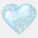 Beautiful heart shaped sticker with silvery white flourish scroll on a powder blue / soft sky blue coloured heart, perfect for adorning scrapbook pages or used as an envelope seal for weddings, bridal showers and a soft baby blue for baby shower. Perfect for a winter wedding in ice blue.