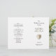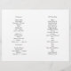 Black and white beach wedding program with a single, heart shaped seashell on the front. All text is black with a large ampersand holding the names on the front. Simple and elegant template for a tropical themed ceremony.
