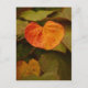 Postcard with photo of heart shaped red and orange autumn leaf of cercis canadensis Forest Pansy