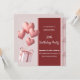 Heart-shaped balloons and birthday presents on pink and dark red background