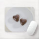 Close-up of two heart shaped chocolate candies in a plate. Copyright: Glowimages