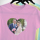 A heart shape to mask your wedding photo. You can unmask and move the photo if needed to fit the bride and groom within the heart area. Heart shaped photo template on a tee. Just add your own photo. Add a personalised custom text fiend to create a custom design.