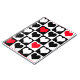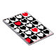 Black, white and red heart shapes in black and white squares