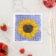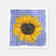 Yellow sunflower with heart-shaped centre and ladybug on blue and white gingham.
