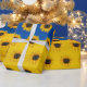Heart Sunflower on Blue and Yellow Wrapping Paper