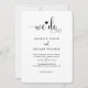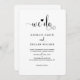A modern and elegant script-only, "we do" wedding invitation featuring an elegant swash calligraphy announcing, "we do," with a heart between the words and a classic small serif font for details giving it a minimalist, formal, black and white invitation look with a modern upgrade.
