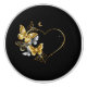 Gold heart shaped frame, decorated with gold, jewellery and white butterflies on black background.