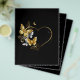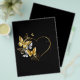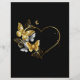Gold heart shaped frame, decorated with gold, jewellery and white butterflies on black background.