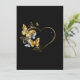 Gold heart shaped frame, decorated with gold, jewellery and white butterflies on black background.