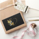 Gold heart shaped frame, decorated with gold, jewellery and white butterflies on black background.