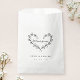 Custom-designed wedding and bridal shower favour bags for seeds favours featuring rustic elegant "let love grow" botanical heart-shaped wreath design.