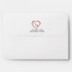 Complete your wedding stationery with white 5x7 envelopes featuring the signature hearts and blooms design on the interior liner. The outside of the envelope can be personalised with a matching heart outline containing the couple's initials, along with the return address elegantly printed below. The vibrant red and floral details inside add an extra touch of sophistication and surprise when the envelope is opened, perfectly complementing the rest of the collection.