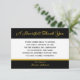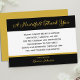 This condolence thank you card features a very heartfelt message in the centre. The words, "A Heartfelt Thank You" appear along the top in gold on black. The bottom is edged in gold and black where you can enter the name of your loved one. This design is simple and classic. Copyright sympathythankyou