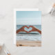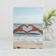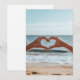 Two hands come together to form a heart shape against a serene beach backdrop, symbolising love, connection, and tranquillity by the sea