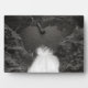 A black and white photograph of a heart shaped pool, that is seen overlooking a waterfall.