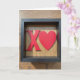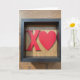 This greeting card shows a matte black shadow-box style frame around a light, natural wood background with soft vertical grain. In the center, a raised red “X” sits beside a raised red heart, both smooth and slightly glossy against the wood. The words “hugs and kisses” appear with the design, in simple lettering that’s easy to read and placed right across the middle near the red symbols. Gentle, diffused light creates soft shadows that make the red shapes look more three-dimensional and cozy. Up close, you can spot a tiny round mark near the heart and a small scuff, which makes it feel like something kept and cared for over time. The contrast of black, pale wood, and red keeps the focus on affection without needing anything complicated. It feels meaningful to give because it’s a straightforward way to say “I’m thinking of you” with warmth and closeness 🥰❤️. Share it to pass along your Valentine’s Day feelings in a simple, heartfelt way.