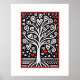 Heartfelt Tree of Love: Black & White Folk Art Poster