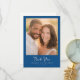 This is a warm and inviting image featuring a joyful couple, Lauren & Benjamin, set against a soft, golden backdrop. The photograph captures their genuine smiles and affectionate embrace, exuding happiness and love. The deep blue border frames the photo beautifully, adding a touch of elegance to the card. It's perfect for expressing gratitude after a wedding, reminding recipients of the joyous occasion with its heartfelt message.