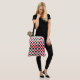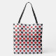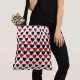 This custom tote bag features red and black hearts on a white background. This tote bag makes a great gift for any occasion.