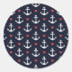 Hearts And Anchors Pattern Classic Round Sticker