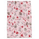 Valentine's Day print with Basset Hounds, Hearts, Flowers, and Dog Bones.
