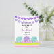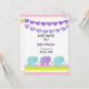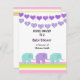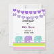 A cute design featuring purple strings of hearts and baby elephants accented by a border of soft stripes. Customise with all of your baby shower information as desired.