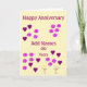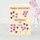 Add names and how many years to front of card and yours and their names to inside, add to message, or change it if you wish to. A pretty card with deep purple hearts and red flowers, and two champagne glasses.