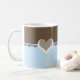 A pretty design in light blue and chocolate brown featuring a heart with lace around it.