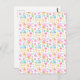 A postcard with a whimsical love themed pattern perfect for Valentine's Day. Heart on a stick, love letters, muffins, tulips and cherries bring joy and happiness to this cute little pattern.