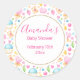 Party stickers with a delicious and whimsical pattern. Hearts, love letters, muffins, tulips and cherries bring joy and happiness to this cute little pattern. Pretty pastel colours. A white circle with a faux gold foil border layered over top with your text inside.