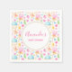 Paper napkins with a delicious and whimsical pattern. Hearts, love letters, muffins, tulips and cherries bring joy and happiness to this cute little pattern. Pretty pastel colours. A white circle with a faux gold foil border layered over top with your text inside.