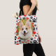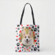 Cute custom tote bags with red hearts and paw patterns. All over print.