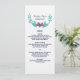 Colourful and whimsical Hearts and Vines Wedding Menu Card with a cute stylised vine and sweet heart border in a pretty combination of turquoise, blue, and red. This trendy and modern design is easy to customise with your wedding details.
