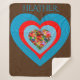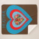 Colourful hearts on a brown Sherpa blanket with personalised name.