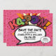 Featuring love hearts confetti, a fun, cool and trendy comic book inspired save the date card that puts the wham, zap, pow into your wedding date announcement. The reverse features a matching love hearts confetti on a pink comic book polka dot pattern which you can replace with your own image or photo. Designed by Thisisnotme©