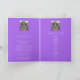 Funeral program order of service double-sided simple in our hearts forever funeral program in white and purple. Simple yet elegant program simply replace sample text and photo holders with your own special photos and information details. Original typography and in our hearts forever graphic design by Sarah Trett for www.mylittleeden.com (Photo credit by Guilherme Stecanella on Unsplash model photo is just a placeholder image for you to replace).