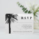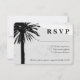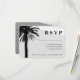 Hearts in sand RSVP wedding cards | Tropical beach theme. Give your guests a way to respond if they are coming to your elegant beach wedding. This design goes to gether with other elegant wedding reception invitations. Customisable text and paper quality. Stylish black and white design with palm tree and entwined heart drawing on the shore. Special rounded cut out corners.